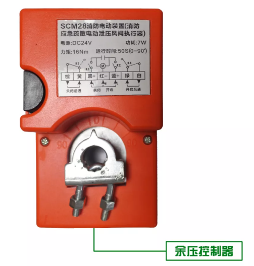 風閥執(zhí)行器一般安裝在旁通閥上,按圖中接線圖,接入余壓控制器。用于接收余壓控制器的命令,控制調(diào)節(jié)旁通閥的開、閉角度;也可手動控制旁通閥的開閉。